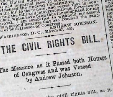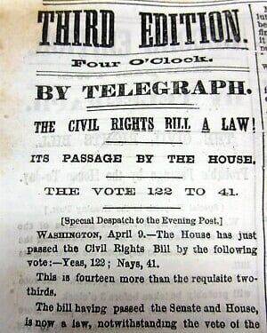 The Civil Rights Act of 1866, passed on April 9, 1866, was the first federal law to define citizenship and guarantee equal rights to all persons born in the United States, particularly those of African descent, including the right to own property, sue in court, and enjoy the full protection of federal law.